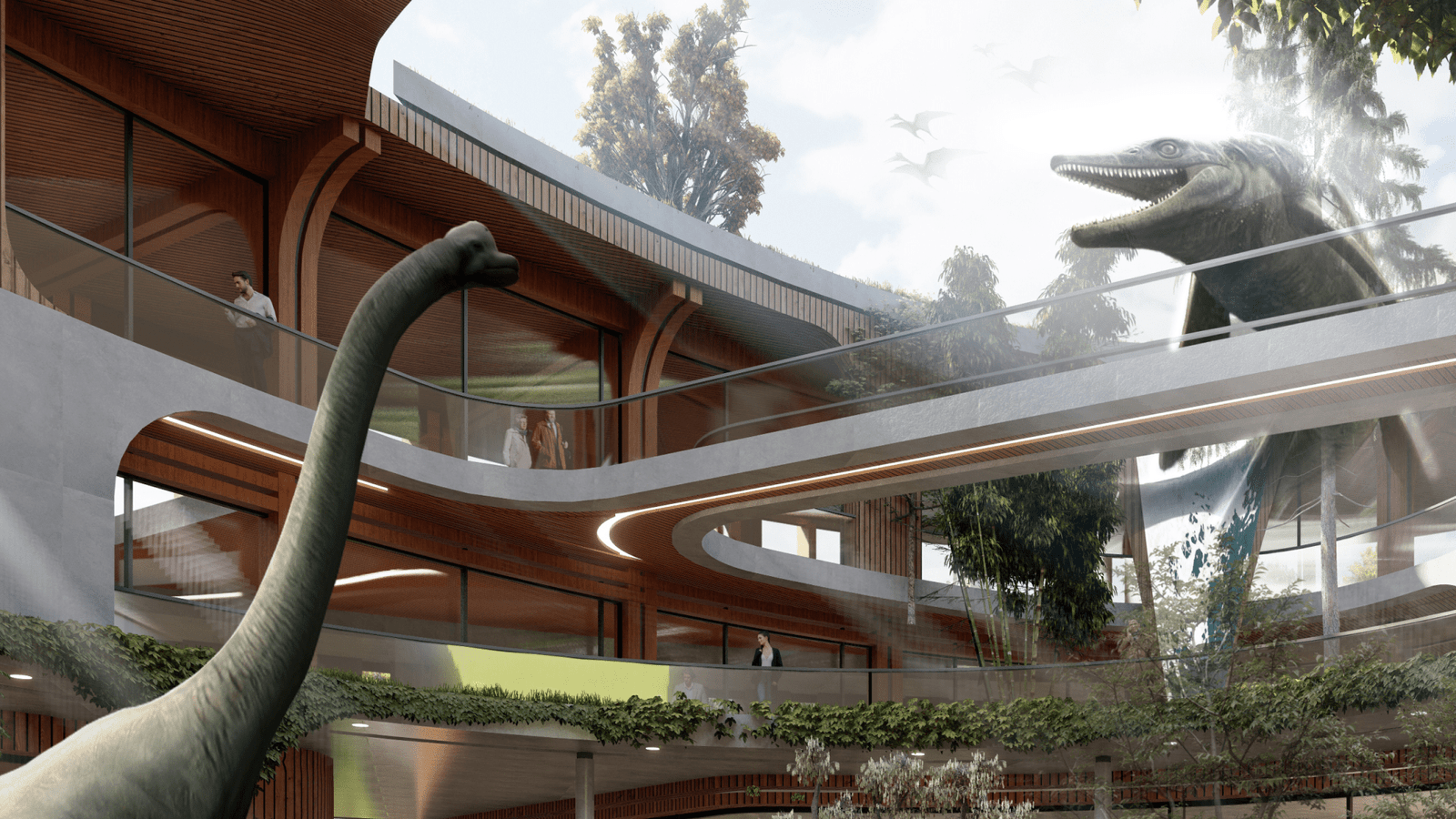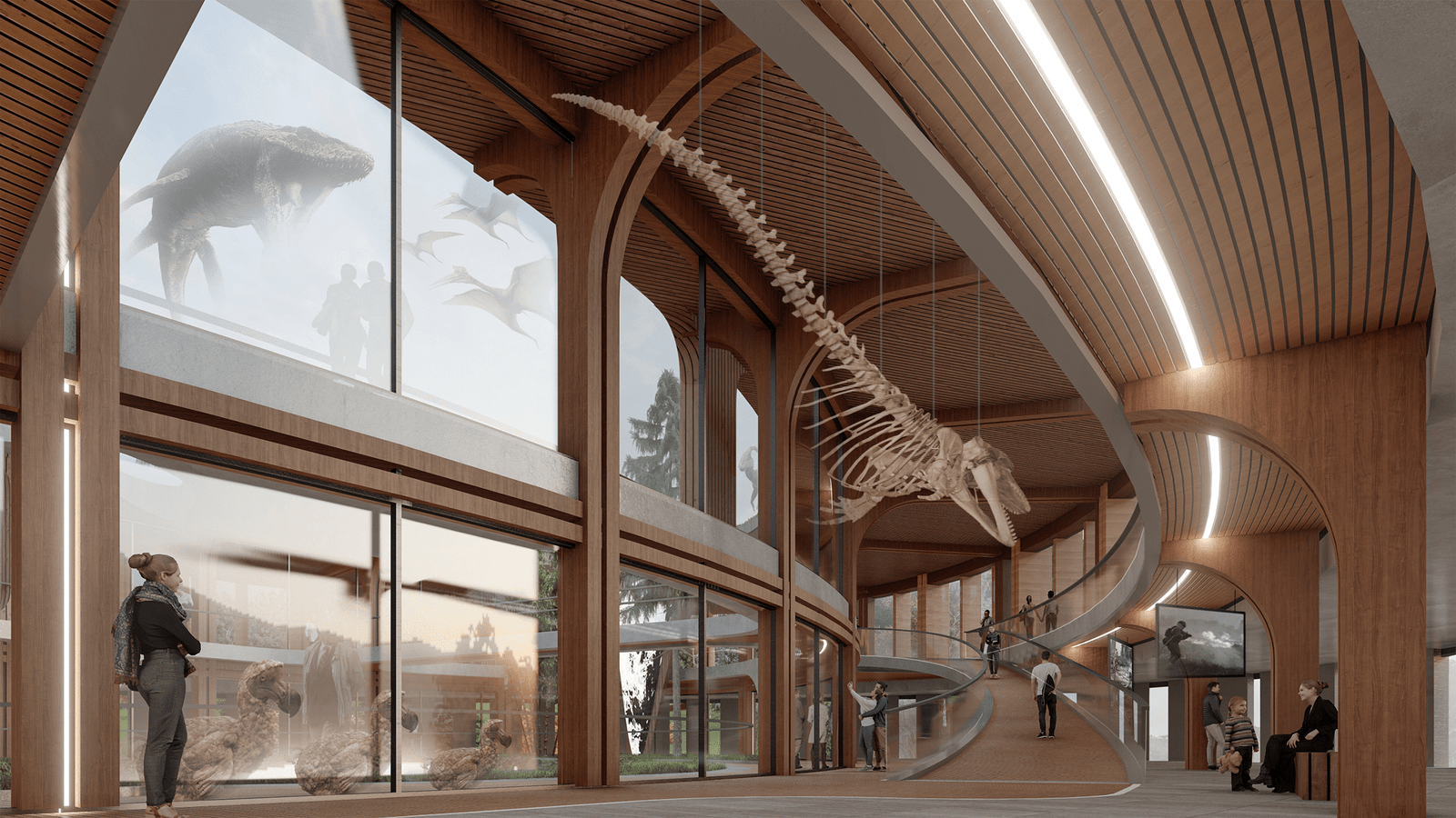 The design of the museum evokes a feeling of solemnity and contemplation. Corridors are narrow, winding, and subdued in lighting—mimicking burrows, nests, and tombs—while main galleries expand into larger voids that hold immersive exhibits. The architectural forms are inspired by fossils, skeletal remains, and decaying organisms—expressing extinction not as an abstraction but as something physical and deeply felt.